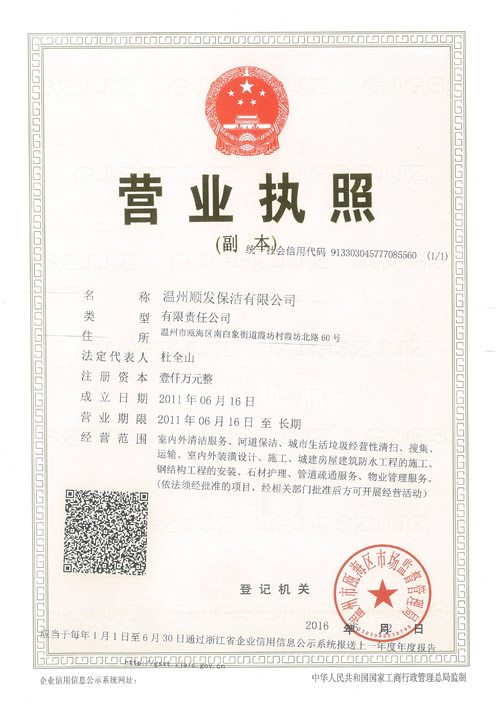 溫州順發(fā)保潔-營業(yè)執(zhí)照